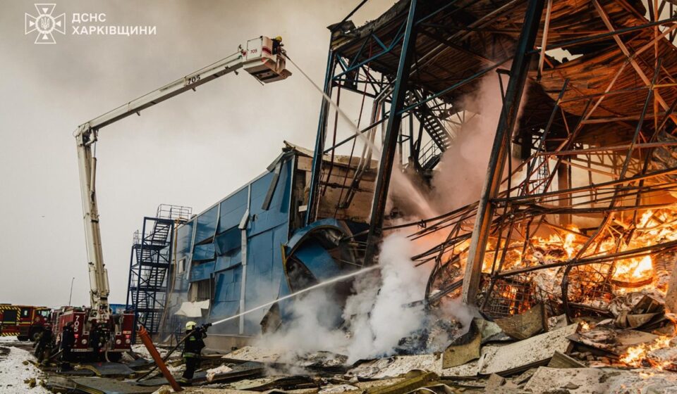 Російські війська завдали ракетного удару по складській будівлі цивільного підприємства у передмісті Харкова. Про це повідомила пресслужба ДСНС у п’ятницю, 30 січня. “Виникла масштабна пожежа площею понад 5000 кв.м. Значних руйнувань зазнали будівельні конструкції. Попередньо, обійшлося без постраждалих”, – розповіли у відомстві.