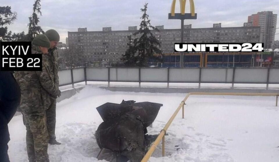У Києві після нещодавньої масованої атаки РФ на даху ресторану McDonald’s на Дарницький площі знайшли фрагмент балістичної ракети Іскандер. Про це повідомила фандрейзингова платформа United24. Зазначається, що унаслідок російської атаки по Україні в ніч проти 22 лютого уламок ракети Іскандер опинився на даху MCDonald’s у Києві. Частину боєприпасу виявили на будівлі після обстрілу.