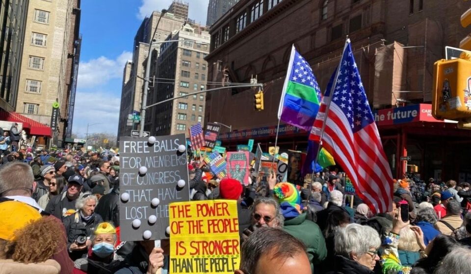 Згідно з інформацією кореспондента, численні демонстранти зібралися у різних частинах Нью-Йорка, причому найбільша кількість учасників була в центрі. Сотні тисяч людей із плакатами пройшли маршем від Центрального парку до Таймс-Сквер.