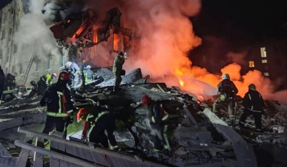 Удар балістичною ракетою по Харкову зруйнував п’ятиповерхівку. Під завалами люди, на місці влучання бушує пожежа. Про це у ніч проти суботи, 7 березня, повідомив мер міста Ігор Терехов, передає Суспільне.