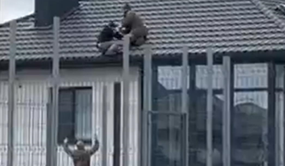 Там також можна побачити їхню сутичку на покрівлі будинку, яка закінчилася тим, що громадянина зіштовхнули з даху. Втім, упав і сам військовослужбовець.